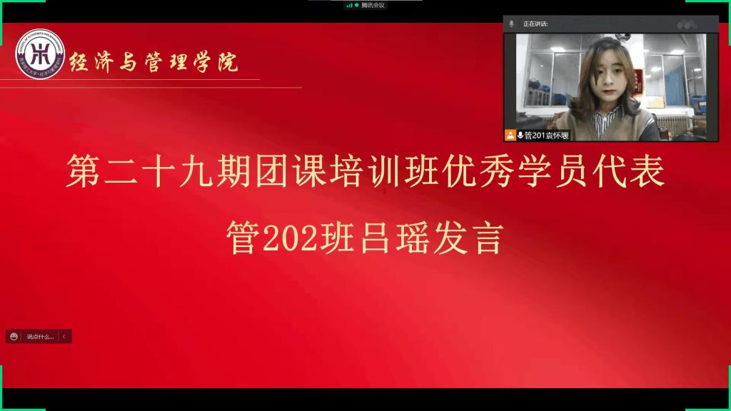 12月20日晚,304永利集团有限公司在线上召开第三十期团课培训班开班仪式。公司党委副书记兼副经理白华煜、校团委荆霄、院学工办主任朱晓明、学工办副主任余佩媛、党建组织员姚伟华、团委书记闫如玉、辅导员蒋艾琳和辅导员任程宇出席本次活动,2021级全体共青团员以宿舍为单位参加了开班仪式。