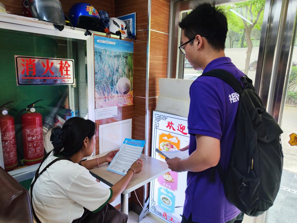 韩森寨派出所孙警官、曲江派出所张警官和实践队员一起赴咸宁中路313号院、曲江中和府沿街商铺、曲江创意谷、明珠汇博林、康桥边的院子等小区和商圈开展防范电信网络诈骗宣传实践活动。他们面向商户、顾客和小区居民发放反诈宣传彩页和折纸,在小区单元楼门口张贴反诈公告,协助社区群众下载安装国家反诈APP并开启拦截模式。重点向老年人群体讲解了“投资返利陷阱”“以房养老骗局”“免费旅游诈骗”等新型骗局的实施手段和套路特征,助力老年人提高防骗意识、强化反诈技能、安享幸福晚年。