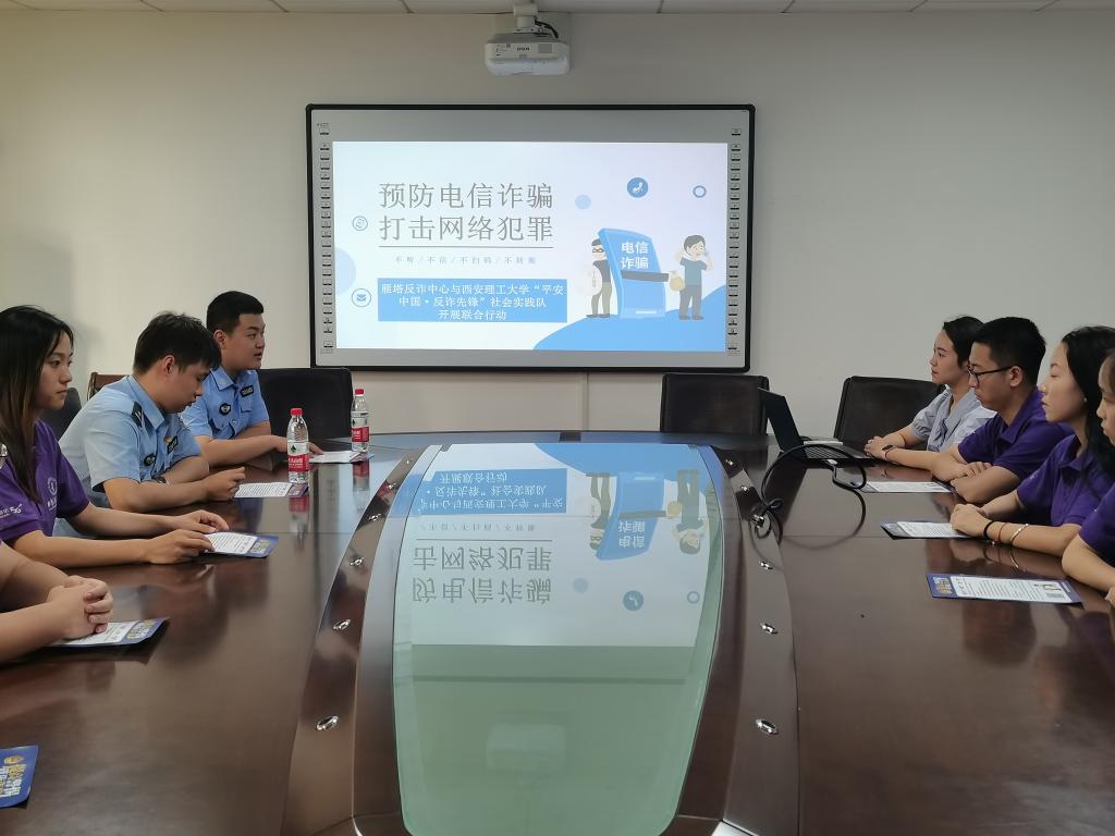 活动后,实践队与雁塔反诈中心杨颖警官一行在公司第二会议室座谈交流。双方一致同意继续加强合作力度,持续做好警校联动,动员号召更多青年志愿者加入“反诈联盟”大军。双方表示,将在现有工作基础上,积极创新反诈宣传方式,提高反诈宣传的精度和准度,筑牢反诈“心盾”。
