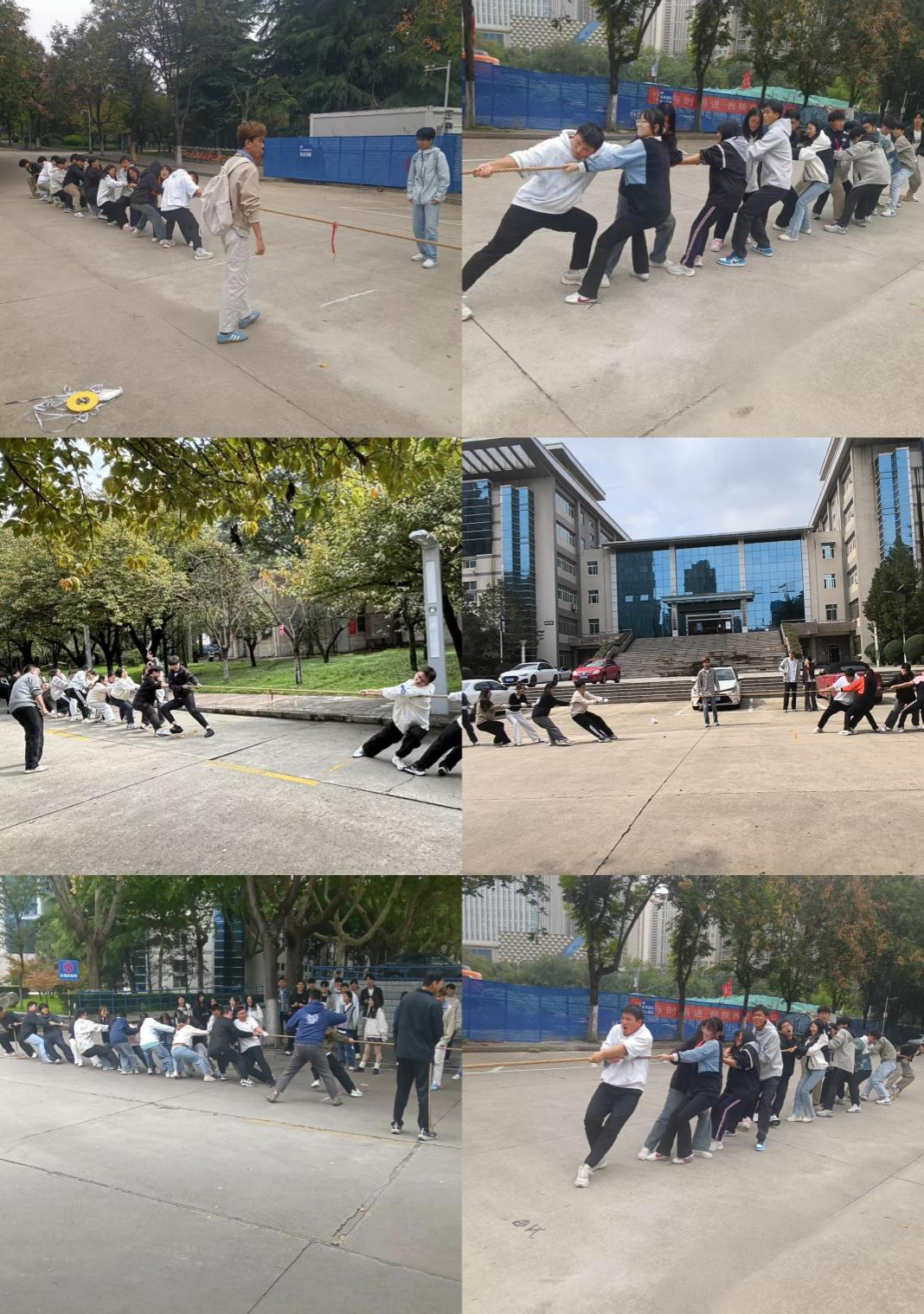 本次比赛分为淘汰赛半决赛和决赛,通过抽签进行两两对决,历时一周,比赛全程使用拔河比赛国际版标准规则执裁。赛前,辅导员任程宇作赛前动员。比赛正式开始,各参赛队有的装备精良、势如破竹,有的扎马沉腰、稳若泰山,有的目光如炬、蓄势待发,大家拼力量、拼战术、拼技术,红绸标志在中线左右拉锯,加油声、助威声、鼓掌声此起彼伏,现场胜者欢呼,豪情激荡,败者笑傲,斗志昂扬!