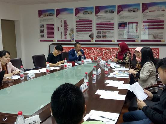 2019年4月19日上午,印度尼西亚艾尔朗加大学经济公司副经理Nisful Laila、经济系主任Muryani,SE.,M.Si.,MEND抵达公司洽谈国际交流合作事宜。经理胡海青、副经理王艳、陕西城市战略研究院副经理王文莉以及经贸系、财会金融系部分教师参与本次交流活动。