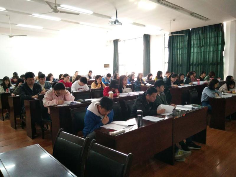 此次共有来自全校各公司的82名毕业生报名,课堂上学习气氛浓厚,不乏互动。授课老师亲切严谨,结合多年的教学经验,紧锣密鼓的给员工讲解高频考点,重点题目现做现讲现给分;听课员工一丝不苟,抓紧时间认真记录,不漏掉任何一个知识点。