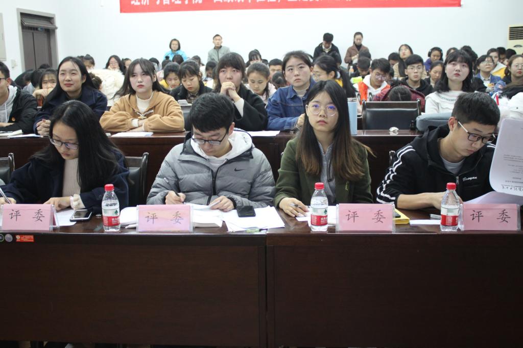 活动伊始,主持人介绍本次团日活动开展的背景,并宣读答辩大会的评分细则。各团支部答辩代表依次上场进行答辩,答辩进程如火如荼,各团支部都以多样的形式分享结合“回顾改革征程,坚定复兴之路” 举办的主题团日活动得种种细节,包括前期规划、活动过程及最后的活动成果等,并总结团支部成员在本次团日活动中的所感所悟。现场答辩环节,各位代表沉着清晰地回答评委们提出的问题。在公平、公正、公开的前提下,经过紧张的评比,会计181班荣获特等奖;人力181班荣获一等奖;营销181班、金融182班荣获二等奖;管171班,经济181班,信管181班荣获三等奖。