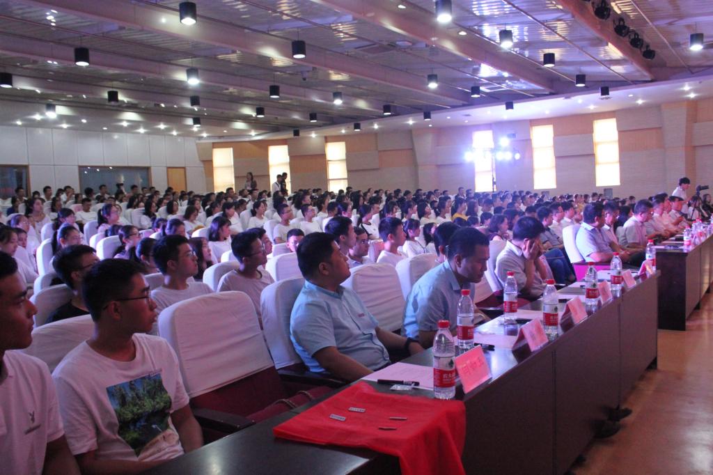 在庄严雄壮的国歌声中,开学典礼拉开帷幕。主持人宗娜老师介绍到会嘉宾并对2019级新生的到来表示热烈的欢迎。大会伊始,胡海青经理致欢迎辞,他代表全院教职员工对2019级本科新生表示热烈欢迎和祝贺,并激励所有新生继续努力,奋发拼搏。随后,王瑞生书记宣读军训表彰决定,并希望获奖员工珍惜荣誉,再接再厉,继续保持艰苦奋斗的优良作风,发扬英勇顽强的拼搏精神,要求全体同学以优秀员工为榜样。之后,新生代表的发言也让所有人对大学新生活怎样度过有了新的认识和决心。今年的新生入学典礼特别设计佩戴校徽和宣读入学誓词环节,在校歌的伴奏声中,全体院领导及各系正副主任为新生代表佩戴校徽,全体员工互相佩戴校徽,员工代表用铿锵有力的声音庄严宣誓,在这一刻,每位新生的身上烙印上了304永利集团有限公司的名字,也象征着他们真正踏入了理工大校门,成为了西理人。最后,大会在全体参会人员合唱的校歌《春华秋实》中圆满结束。