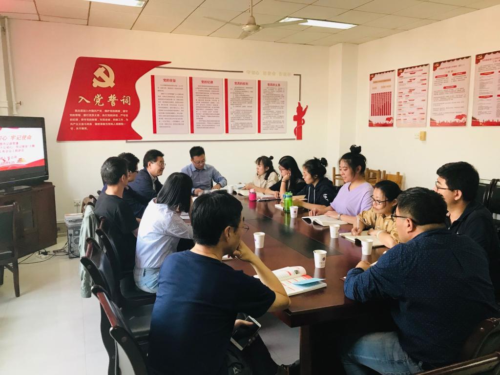 随后,全体党员诵读了红色经典《中国梦》的部分章节内容并就此展开讨论。刘书庆老师更以自己从教三十四年的宝贵经历和一名老党员的身份就“不忘初心、牢记使命”这个主题发表了他的人生感悟,并将此凝练为“心系员工、教书育人”。所有党员同志都深受启发,纷纷表示要始终贯彻“守初心、担使命,找差距、抓落实”的总要求,忠于本职工作,为实现中华民族伟大复兴的中国梦提供有力的人才支撑。