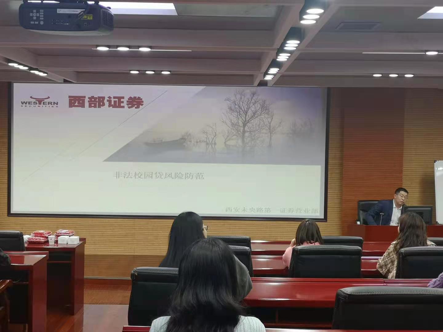 为了让同学们进一步认识网络诈骗行为的危害性,提高自我防范网络、电信诈骗意识。2021年3月15日下午,公司邀请西部证券人事负责人、高级投资顾问郑协一行在EMBA报告厅举办防范非法校园贷讲座暨西部证券专场招聘会,会议由公司杨水利教授主持。