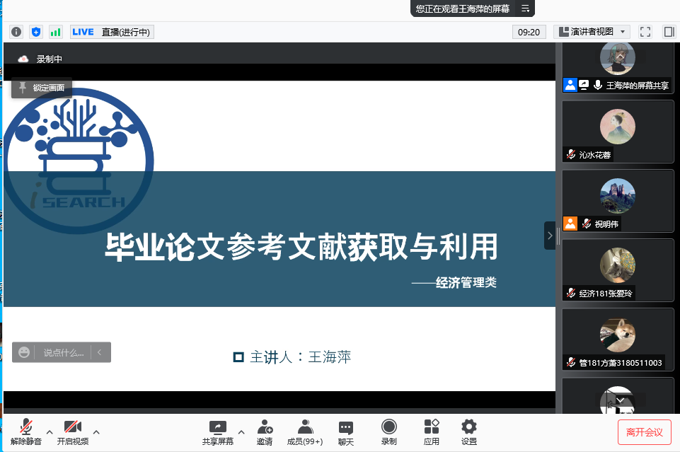 2022年1月15日,304永利集团有限公司本科公司产品系列报告—“毕业论文参考文献获取与利用”在线上举行。本次报告邀请公司图书馆情报支持与研究中心咨询馆员、长期从事信息素养教育与学科服务工作的王海萍老师主讲,公司副经理王艳主持并点评,公司各专业2018级全体员工参加了报告会。