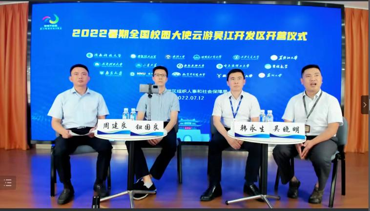在启动仪式上,钮国良副局长代表吴江经济技术开发区进行致辞,向入营的各位同学和企业表示欢迎,他详细介绍了吴江的经济发展以及就业环境等情况,并宣布校园大使云游吴江训练营正式开营。