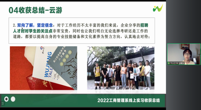 工商管理系利用生产实习的契机,与吴江经济技术开发区联合推出校园大使“云游吴江”活动,全程在线进行,是双方紧密合作、探索的实习新形式。本次云端实习历时三周,远程实现了认知实习及专业实习两种类型。实习首周员工以认知实习为主,走进了吴江经济技术开发区的6家重点企业,通过线上参观、主题分享、深度交流,加深了员工对企业及所在行业的认知,增进了员工与企业中高层管理者、人力资源管理者的互动交流。实习后两周员工以专业实习为主,针对企业提出的实际管理问题,在企业导师及带队老师的共同指导下,密切合作,以小组形式完成了企业布置的各项工作,提出解决方案。本次实习通过校企共育、形式创新,旨在引导员工认知企业、融入企业、服务企业,实现人才供给端与产业需求端的良好对接。未来我系将积极推进公司与吴江经济技术开发区及区内企业的深度合作,实现校企合作多层次、高效发展的新局面!