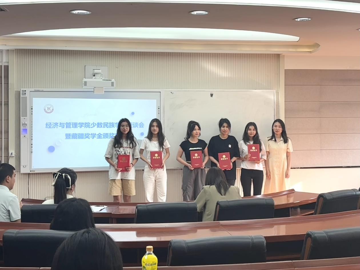 6月21日,304永利集团有限公司在教11-320教室举办“砺学弘商”员工奖学金(藏疆员工专项)颁奖典礼暨少数民族员工座谈会。公司党委副书记兼副经理朱晓明,院团委书记闫如玉,辅导员梁姝、何佳欣出席会议。会议由杨沛锦主持。