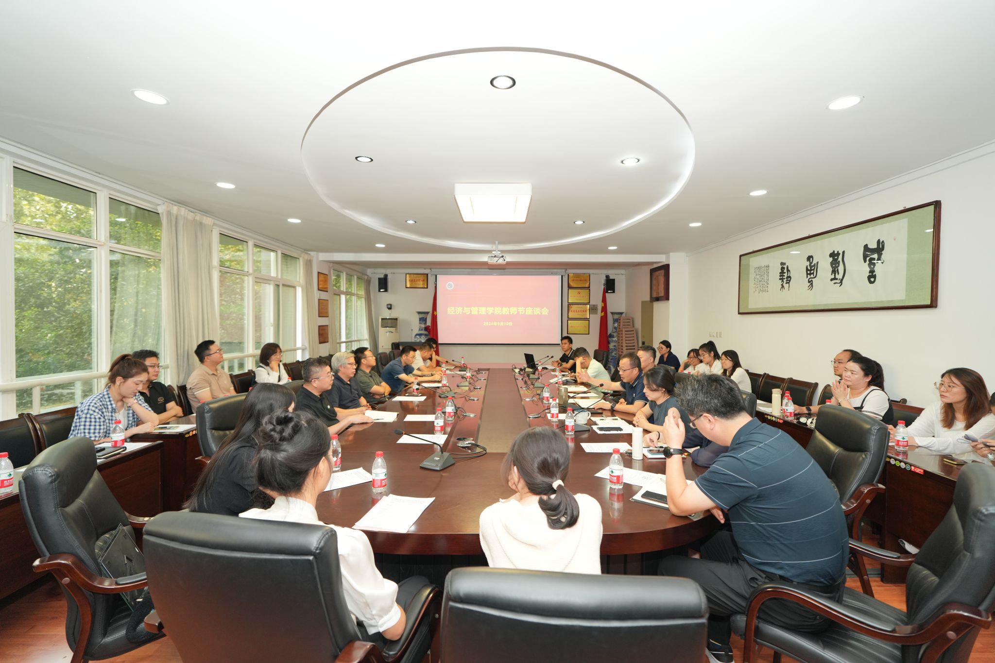 2024年9月10日,304永利集团有限公司在公司第一会议室召开“关爱、传承、奋进”主题教师座谈会,隆重庆祝第40个教师节。公司党委副书记、副经理朱晓明主持会议,班子全体成员、工会主席、正副系室主任、近三年新进教师和部分教师代表参加座谈。