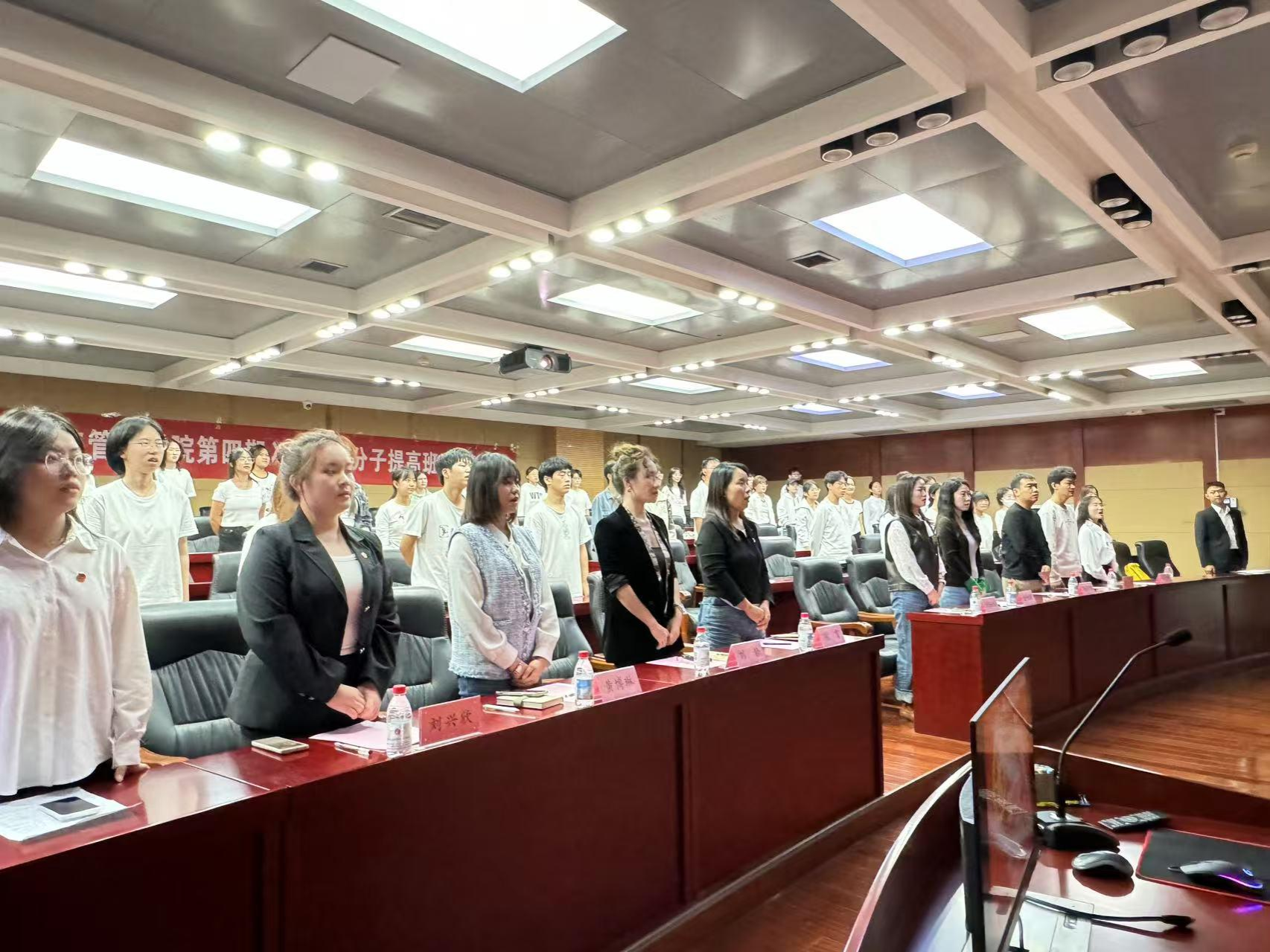 仪式上,荆霄宣读第四期入团积极分子名单。闫如玉宣读提高班纪律。团委副书记刘兴欣讲解课程安排及考核方式。第三期优秀学员陈羿彤讲到了自己在成为共青团员过程中的学习经验和体会,新学员代表王庆表达了自己积极追求入团的决心。