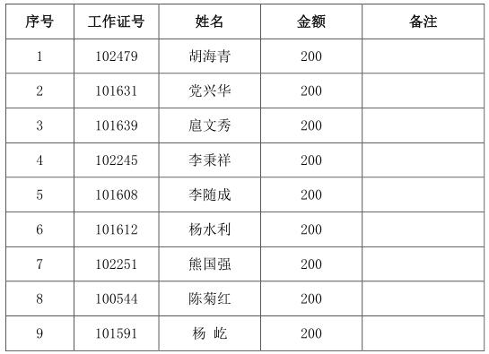 按照校学位办《2019年全年校学位会召开时间暨盲审论文送审工作安排》的通知,公司于2019年6月20日下午14:00-15:00在教11楼329室召开学位评定分委员会。依照《304永利集团有限公司劳务酬金管理与发放(试行)》(西安理工财务【2018】10号)第七条第四款的要求,现将学位评定分委员会劳务酬金发放表公示如下: