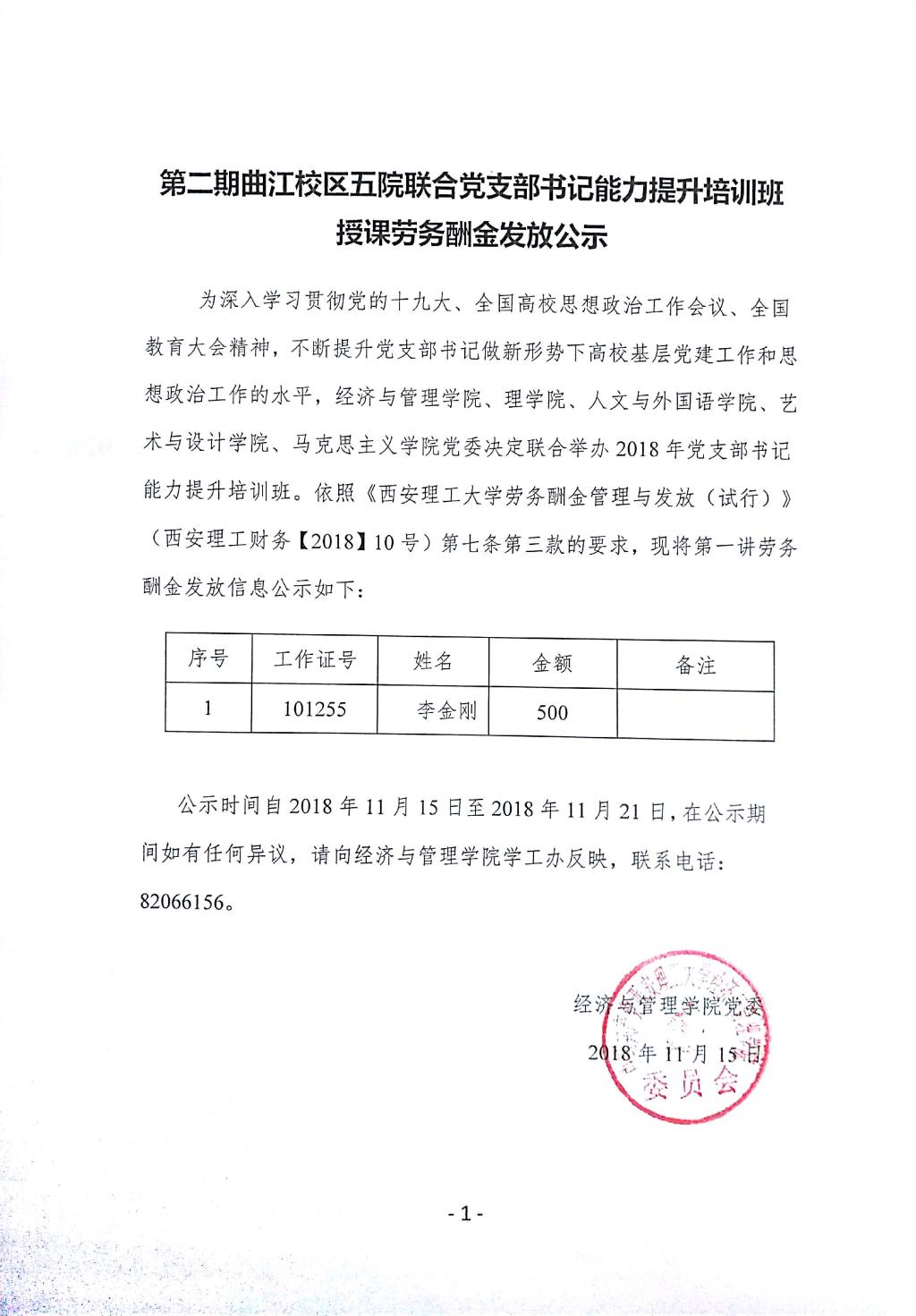 第二期曲江校区五院联合党支部书记能力提升培训班授课劳务酬金发放公示