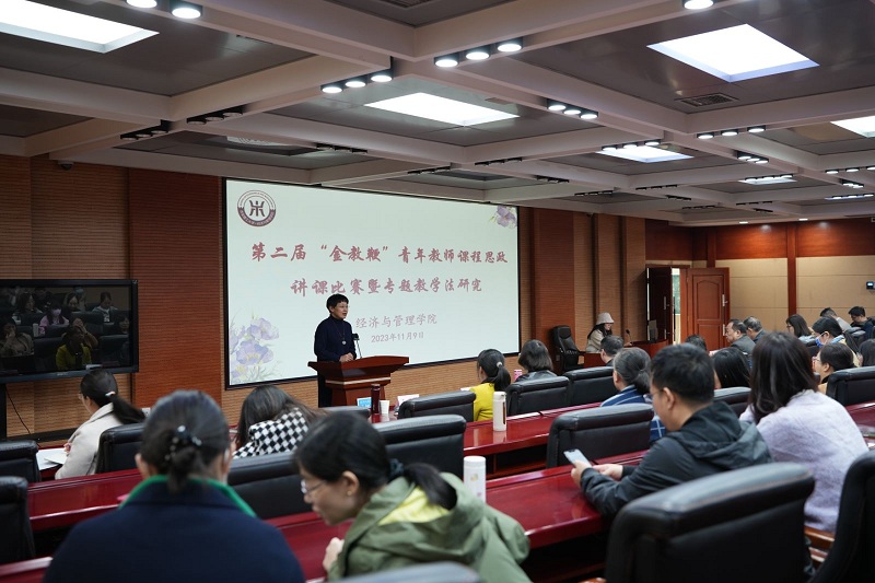 为全面落实立德树人根本任务、提升育人成效,11月9日下午,公司举办了第二届“金教鞭”青年教师课程思政讲课比赛暨专题教学法活动。本次比赛的评审专家包括首批教育部“课程思政示范课程教学名师”、陕西省教学名师李言教授,马克思主义公司史向军教授,计算机公司、校教学指导专门委员会委员张亚玲教授,校第三、四届“树魂立根 课程育人”课程思政讲课比赛一等奖获得者刘静老师和王丽琴老师。比赛由副经理王艳主持,教务处副处长王学通致开幕辞,公司党委书记王瑞生、经理胡海青以及全院教师现场观摩比赛。