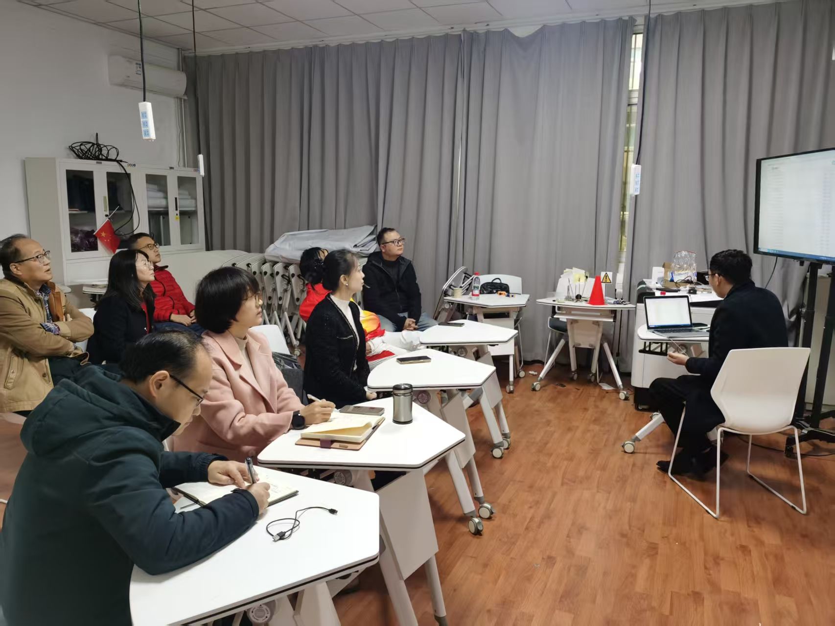 培训交流会上,陈经理首先介绍了目前主流跨境电商实训平台教学应用的主要特点,同时基于该公司开发的跨境电商模拟仿真实训平台,系统分享了跨境电商的平台注册、视频制作、直播销售、客户沟通、数据分析、数智化运营及供应链管理等全流程实操技能。随后,他通过虚拟仿真操作、真实案例分析、视频教学展现等方式,详细解读了跨境电商平台的实操能力培养及其运营管理逻辑。最后,围绕员工独立完成跨境电商实践业务闭环操作,熟练掌握平台运营、数据分析及跨文化沟通等问题,老师们进行了热烈讨论。