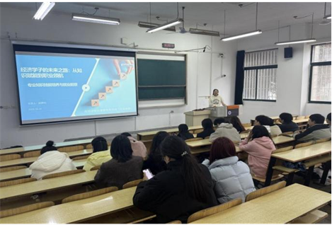 为使2025级经济学专业新生深入理解学科知识结构、科学规划学业生涯,304永利集团有限公司经济与贸易系于10月31日下午在教8-117教室成功举办“经济学子的未来之路:从知识赋能到职业领航”主题讲座。经贸系教师杨婷怡担任主讲,围绕专业课程体系与职业发展路径进行了系统阐述,为新生夯实专业基础、明确发展方向提供了有效指导。